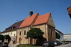 Die im Kern im 14. Jahrhundert aus Bruchsteinen gebaute Saalkirche wurde 1657 verändert. Sie besteht aus einem Langhaus und einem eingezogenen, gerade geschlossenen Chor im Osten, die beide mit Satteldächern bedeckt sind. Aus dem Satteldach des Langhauses erhebt sich in der Mitte ein sechseckiger Dachreiter, der mit einer Zwiebelhaube bedeckt ist. Der Innenraum des Langhauses ist mit einer Flachdecke überspannt, die von Vouten gerahmt wird, der des Chors mit einem Kreuzrippengewölbe. Die Brüstung der Empore wurde 1735 bemalt. Der Hochaltar mit den Statuetten der vierzehn Nothelfer wurde 1735–42 von Johann Michael Doser geschaffen. Die Seitenaltäre stammen vom gleichen Künstler.