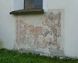 Auf der Außenseite der Kapelle sind Spuren von Fresken aus dem 15. Jahrhundert erhalten. Die Bilder auf der Westseite über dem Eingang zeigten Christus zwischen den zwölf Aposteln. Erkennbar sind Johannes mit dem Kelch und Andreas mit dem Kreuz. Auf der Nordseite ist Papst Silvester mit einem Stier zu sehen.
