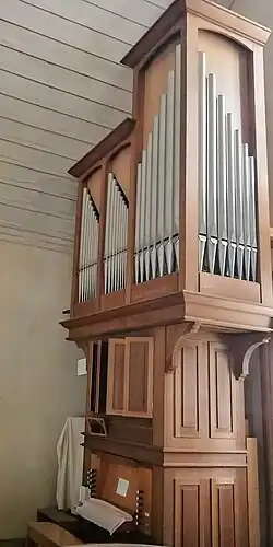 Die Orgel stammt aus dem Jahr 1986 und wurde von Georg Jann erbaut.[27] Die Schleifladen-Orgel hat 15 Register, verteilt auf zwei Manuale und Pedal. Die Disposition lautet:[28]