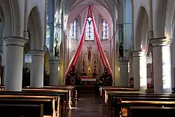 In der Kirche haben sich noch einige Ausstattungsstücke aus der Bauzeit erhalten. Dazu zählen der Hochaltar, die beiden Nebenaltäre in den Seitenschiffen, die Heiligenfiguren, der Beichtstuhl sowie die Kreuzwegstationen.