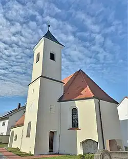 Die Saalkirche wurde 1656 erbaut. Sie besteht aus einem Langhaus, einem dreiseitig geschlossenen Chor im Osten und einem Chorflankenturm auf quadratischem Grundriss an dessen Südwand des Chors. Das Glockengeschoss des Turms wurde nach einem Blitzschlag 1767 erneuert und mit einem Pyramidendach bedeckt. Im Glockenstuhl hängen zwei Kirchenglocken.