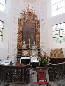 Die zur Aufbewahrung der Korneliusreliquien errichtete Korneliuskapelle besitzt einen Durchmesser von neun Metern.[22] Ihr Inneres ist besonders reich dekoriert. An der Ostseite steht ein großer vergoldeter Barockaltar, in dessen Tabernakel früher die Korneliusreliquien aufbewahrt wurden. Das Altarbild stammt von einem unbekannten Künstler des 18. Jahrhunderts. Zu beiden Seiten des Altars fanden sich früher zwei über zwei Meter[35] hohe Figuren des heiligen Petrus und des heiligen Paulus aus der Zeit des Barocks. Sie flankierten zuvor den Hochaltar im Mittelschiff.[35] Die Ecken der Kapelle zeigen Stuckpilaster mit korinthischen Kapitellen und sind üppig mit Festons und Putten geschmückt. Auch die Kuppeldecke zeigt reichen Stuckdekor.