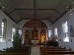 Von der Ausstattung sind der barocke Hochaltar mit den zwei Nebenaltären zu erwähnen, ein Sandsteinrelief des hl. Nikolaus und das Taufbecken, ebenfalls aus Stein.[2]