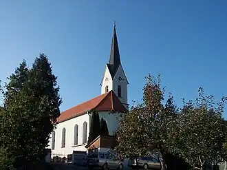 Beim Bau der heutigen Pfarrkirche in den Jahren 1693/94 wurden im Mauerwerk große Teile des mittelalterlichen Vorgängerbaus wiederverwendet. So wurden bei der letzten Innenrenovierung im Chor ein zugesetztes Spitzbogenfenster und Reste von Wandmalereien entdeckt. Auch der dreiseitige Chorschluss und die spätmittelalterlichen Lampennischen in den Langhausmauern verweisen auf die Übernahme eines älteren Grundrisses. Man geht heute davon aus, dass lediglich eine bereits bestehende Kirche, die im Dreißigjährigen Krieg beschädigt wurde, umgebaut wurde. Die neue Kirche wurde 1696 geweiht.[2][3]