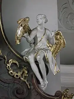 Das Hauptbild des Hochaltars zeigt Christus auf der Weltkugel über einer Darstellung des hl. Nikolaus von Tolentino, der von Augustinus der Gottesmutter empfohlen wird. Das Oberbild des Hauptaltars zeigt den hl. Martin von Tours mit Gans und Engelputten. Flankiert wird das Hauptbild von Figuren der Kirchenlehrer und Bischöfe Ambrosius von Mailand und dessen Schüler Augustinus von Hippo, ausgeführt von Johann Kessler.