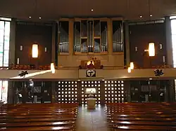 Die erste Orgel von St. Laurentius war eine elektronische, die 1970 durch die heutige Pfeifenorgel der Firma Neidhart und L’Hôte, Neuchâtel ersetzt wurde.[11] Das Instrument verfügt über 26 Register, die auf zwei Manuale und Pedal verteilt sind.[12][13]