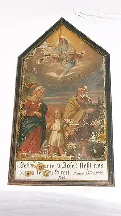 Bei der letzten Renovierung der Kapelle 1990 wurden an der Ostseite Zeichen freigelegt, die noch nicht identifiziert sind. Vermutlich handelt es sich dabei um Hauszeichen der Fuhrleute, die an der Kirche Halt machten.