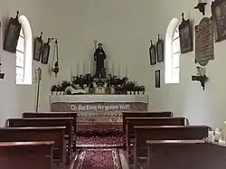 Der Putzbau mit rundem Chorschluss und Dachreiter besitzt einen Altar mit der Figur des heiligen Leonhard.