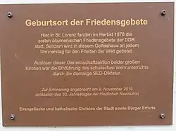 - ↑ a b St. Lorenz, Pfarrkirche, Friedensgebete seit 1978. Katholische Kirchengemeinde St. Laurentius Erfurt, abgerufen am 1. Juni 2022.