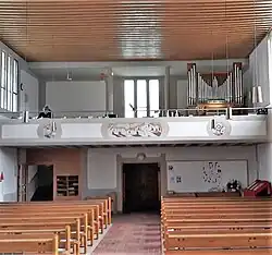 Die Emporenbrüstung ist nach Motiven von Oberbaurat Albert Köhler (Landeskirchenamt München) bemalt und verweist auf Bilder aus der Offenbarung des Johannes.[2]