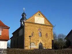 Die barocke Saalkirche wurde anstelle der Kapelle der ehemaligen Burg auf einem Grundstück, das ursprünglich dem Grafen Giech gehörte, im Auftrag des Bamberger Domkapitels von den Brüdern Gregor und Dionysius Finsterwalder 1716 erbaut. Sie hat einen eingezogenen, dreiseitig abgeschlossenen Chor im Westen, der im Innenraum mit einem Tonnengewölbe überspannt ist. Über dem Satteldach des Chors erhebt sich dicht über dem des Langhauses, dessen Innenraum mit einer Flachdecke überspannt ist, ein achteckiger, schiefergedeckter Dachreiter, der mit einer achtseitigen Welschen Haube bedeckt ist. In der Fassade an der Ostseite des Langhauses, das von Pilastern an den Seiten verziert ist, befindet sich das Portal. Das darüber liegende Bogenfenster wird von Statuen der heiligen Maria Magdalena und der heiligen Katharina in Wandnischen flankiert. Im Giebel darüber sind eine Sonnenuhr und ein Zifferblatt zu sehen. Das Altarretabel des Hochaltars wurde von Georg Sebastian Urlaub gemalt. 1862 wurde an der Nordseite ein Mausoleum angebaut. Die von Josef Wiedemann gebaute Orgel mit neun Registern, einem Manual und einem Pedal[1] wurde 1873 von Andreas Hemmerlein restauriert.[2]