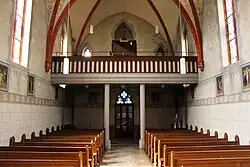Bei der Orgel der Kirche handelt es sich um eine Serienorgel Modell D der Firma E. F. Walcker & Cie. (Ludwigsburg), die ca. 1960 gebaut wurde. Das auf einer Empore aufgestellte Schleifladen-Instrument verfügt über 6 Register, verteilt auf ein Manual und Pedal. Die Spiel- und Registertraktur ist mechanisch. Die Disposition lautet wie folgt:[9]