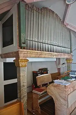 Die Orgel wurde 1935 von Georg Glatzl aus Altmühldorf erbaut. Das Kegelladeninstrument mit pneumatischen Spiel- und Registertrakturen umfasst insgesamt neun Register auf einem Manual und Pedal. Typisch für die Entstehungszeit sind der freistehende Spieltisch und der Freipfeifenprospekt. Die Disposition lautet wie folgt:[3]