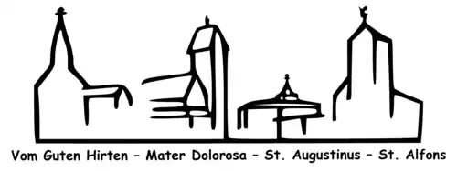 Dazu gehören die beiden katholischen Schulen Sankt Alfons und Sankt Hildegard sowie das Sankt-Marien-Krankenhaus und das benachbarte Kloster Sankt Augustinus der Marienschwestern von der Unbefleckten Empfängnis (SMI). Ferner gibt es drei katholische Kindertagesstätten sowie mehrere Einrichtungen des Deutschen Caritasverbands und die Katholische Arbeitsgemeinschaft für Soldatenbetreuung (KAS).[2][4]
