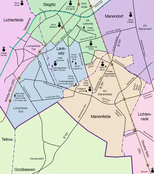 - ↑ a b c Pastoraler Raum Berlin Lankwitz-Marienfelde, ( des vom 20. März 2017 im Internet Archive) Info: Der Archivlink wurde automatisch eingesetzt und noch nicht geprüft. Bitte prüfe Original- und Archivlink gemäß Anleitung und entferne dann diesen Hinweis. Erzbistum Berlin, abgerufen am 13. September 2017