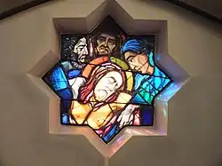 Mit einer Urkunde vom 16. Februar 1931 erteilte das Bischöfliche Ordinariat die Genehmigung zur Errichtung eines Kreuzwegs.[21] Daraufhin wurden die im Kirchenschiff installierten 14-farbigen Kreuzwegfenster mit einer Andacht gesegnet.[10]