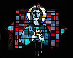 Am Giebel des Kirchturms in Höhe der Orgelempore wurde ebenfalls ein sternförmiges Fenster eingesetzt. In diesem befand sich anfangs ein Brustbild der Kirchenpatronin Maria Magdalena, senkrecht links und rechts hinter ihr war der Schriftzug „HL. MARIA MAGDALENA“ zu lesen. Der Künstler ist nicht überliefert.[9] Dieses Fenster ging im Zweiten Weltkrieg zu Bruch, da es nicht ausgebaut werden konnte. Im Jahr 1967 stiftete die Kirchengemeinde aus Anlass des silbernen Priesterjubiläums von Pfarrer Juzek ein neues farbiges Glasfenster mit dem Bildnis der Kirchenpatronin. Der Künstler ist ebenfalls nicht dokumentiert.