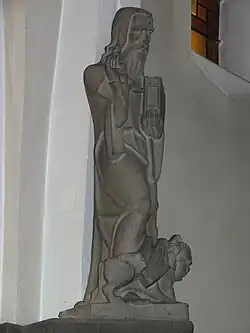 Im Oktober 1941 lieferten Lotters Werkstätten aus Waidmannslust die sechs Apostelfiguren, die ihren Platz auf den restlichen Säulen der Seitenschiffe erhielten. Es handelte sich um die Darstellungen des Petrus, Paulus, Andreas, Jakobus der Ältere, Matthäus und Judas Thaddäus. Die Skulpturen wurden zusammen mit den Engeln im November benediziert. Da aber die Evangelisten Markus und Johannes im Stil absolut nicht zu den Apostelfiguren passten, ließ der Pfarrer die Evangelisten auf Konsolen an der Emporenbrüstung aufstellen.[28]