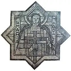 Schließlich weihte Bischof Christian Schreiber am 21. September 1930 die Kirche auf den Namen der heiligen Maria Magdalena als Kirchenpatronin.[10] Der Namensgebung war ein Streit zwischen verschiedenen Gemeindemitgliedern vorausgegangen, die ihre Spendensammlung für eine Maria-Hilf-Kirche durchgeführt hatten. Mit dem Hinweis, dass im benachbarten Reinickendorf bereits eine Marienkirche existierte und das Heim in Nordend auch Maria im Namen führte, schlug Pfarrer Feige dann Maria Magdalena vor. Er hatte diese Idee der Predigt eines seinerzeit berühmten Dominikanerpaters entnommen, der geäußert hatte, „in das Sündenbabel Berlin gehöre eine Kirche, die der großen Büßerin Maria von Magdala geweiht sein müsse.“[19] Bei der abendlichen Feier nach der Konsekration erhielt Kuratus Lenzel direkt vom Bischof den Titel Pfarrer und das Recht, den Pfarrkragen zu tragen.[20]