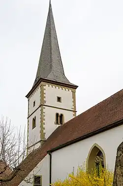Die Magdalenenkirche ist geostet und besitzt einen romanischen Chorturm als ältesten Teil des Gotteshauses. Der Turm mit rechteckigem Grundriss ist seit 1683 35 m hoch, in vier Geschosse gegliedert und besitzt einen achtseitigen Spitzhelm. Das Hauptportal der Kirche ist rundbogig, hat profilierte Rahmungen und ist von einem Blendrahmen umgeben. Innen hat die Kirche einen rundbogigen Chorbogen.[4]