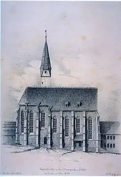 Der Sakralbau geht auf eine im Jahre 1322 gestiftete Hauskapelle im Hof der Familie Unmuß von Altenhausen zurück. Die gotische Hallenkirche wurde 1464 bis 1467 anstelle dieser Kapelle erbaut. Nach ihrer Profanierung 1802 durch die Stadt diente sie als Salzmagazin und wurde 1812 zugunsten der Verbreiterung der Schuppachgasse abgebrochen.