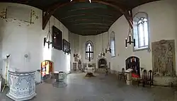 1977–1988 wurde die Kirche im Inneren weitgehend rekonstruiert und umgestaltet. Die Arkaden zu einem früher beseitigten Seitenschiff wurden freigelegt und verglast. Alle Emporen entfernte man, ebenso einen Kanzelaltar aus dem 18. Jahrhundert. Der Kanzelaltar wurde ein Lesepult.[1]