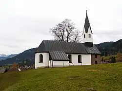 Die spätgotische Kapelle vom Anfang des 16. Jahrhunderts besteht aus einem Langhaus, einem im Osten 1647 angebauten dreiseitig geschlossenen Chor und einer Sakristei unter dem Schleppdach im Norden des Chors. Das Langhaus wurde nach Westen verlängert. Aus dem Satteldach des Anbaus erhebt sich ein quadratischer, hoher Dachreiter, der den Glockenstuhl enthält und mit einem spitzen Helm abgeschlossen ist.