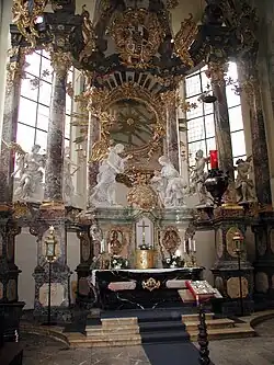 So bestand der Hauptaltar aus einer vorderen und einer hinteren Mensa, so dass an ihm in zwei Richtungen die heilige Messe gefeiert werden konnten: vorne die heilige Messe für die Ordensleute und das Volk, hinten für den Kurfürsten Clemens August und sein Gefolge.