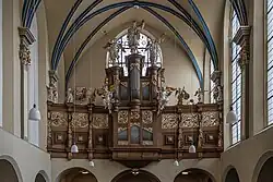 Im Jahr 1633[2] wurde über dem westlichen Haupteingang eine Orgel installiert, verziert wurde der Orgelprospekt mit der Darstellung des Harfe spielenden Königs David, gesäumt von musizierenden Engeln.