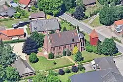 Der Vorgängerbau wurde um 1250 als Eigenkirche der Grafen Wölpe erstmals erwähnt. Die neugotische Saalkirche aus Backsteinen wurde 1852–1854 gebaut. Das Kirchenschiff hat im Osten einen eingezogenen Chor mit polygonalem Abschluss. Die Wände werden von Strebepfeilern gestützt. Davor befindet sich ein freistehender hölzerner Glockenturm auf quadratischem Grundriss, der bereits im 17. Jahrhundert errichtet wurde. Er ist bedeckt mit einem Pyramidendach.