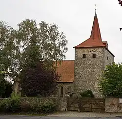 Die mittelalterliche, von Strebepfeilern umstellte Saalkirche wurde aus Bruchsteinen errichtet. Das Langhaus aus den leicht querrechteckigen Jochen wurde ohne Verbindung zum Kirchturm zusammen mit dem spätgotischen Chor mit 5/8-Schluss 1497 erbaut, diese Jahreszahl steht am Strebepfeiler des Chors. Der quadratische Kirchturm im Westen, ein ehemaliger Wehrturm, ist bereits Ende des 12. Jahrhunderts entstanden. Er hat einfache Klangarkaden und ist mit einem spitzen Helm bedeckt. Bei der Restaurierung 1871/72 unter der Leitung von Conrad Wilhelm Hase wurden u. a. die Spitzbogenfenster vergrößert und das Portal im Westen erneuert. Die Halle im Turm ist mit einem Tonnengewölbe überspannt. Das Kirchenschiff trägt ein Kreuzgratgewölbe mit breiten, gespitzten Gurt- und Schildbögen auf Wandvorlagen, die mit Kämpfern abschließen. Im Chor wächst Kreuzgratgewölbe mit Schlusssteinen ansatzlos aus der Wand.