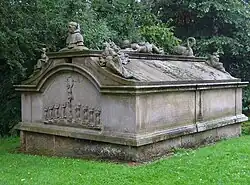 Auf dem Friedhof ein aufwendiger barocker Grabkeller der Familie von Münnich, um 1710/11 vom Bremer Bildhauer Johann Mehntz aus Obernkirchner Sandstein geschaffen. Auf dem Dach ein überlebensgroßer Kruzifixus, auf dem Vordergiebel die Büste eines Mönchs, eine Anspielung auf den Familiennamen, der nach der Adelung in von Mönnich umbenannt wurde. Rechts und links des Mönchs zwei liegende Frauen mit den Vanitas-Symbolen: Stundenglas und Totenkopf. Auf der Rückseite ein Schwan, das Attribut Martin Luthers.