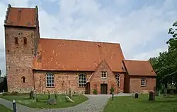 Die Saalkirche wurde 1667 aus Backsteinen auf den Grundmauern aus Feldsteinen erbaut. Sie besteht aus einem Langhaus und einem Kirchturm im Westen, der mit einem Satteldach zwischen Staffelgiebeln bedeckt ist. Das Portal befindet sich in einem Anbau an der Südwand, dahinter liegt das Vestibül. Das Erdgeschoss des Kirchturms ist zum Langhaus hin geöffnet.