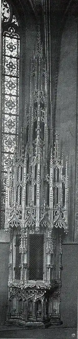 Das bedeutende Reliquienkruzifix aus Eichenholz wurde wohl um 1070 in Köln geschnitzt[3]. Der sehr schlanke Korpus, dessen Sehnen deutlich hervor treten, wirkt schlicht. Teile der ursprünglichen Fassung sind überliefert und wurden 1950 restauriert. Die Balken des Kreuzes wurden erneuert, das Sepulcrum nachträglich eingesetzt.[4]