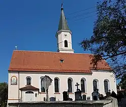 Die geostete Saalkirche besitzt einen eingezogenen Polygonalchor. Im Norden ist an den im Kern spätgotischen Bau ein Flankenturm mit Spitzhelm angeschlossen.[1] Im Nord- und Südwesten befindet sich jeweils eine kleine Vorhalle mit Eingang.