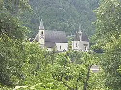 Als älteste Bauteile gelten der Glockenturm und die Langhaus-Nordwand, die beide mit Ablassurkunden von 1281, 1295, 1310 und 1311 nachgewiesen werden können. Der bestehende, spätgotische Neubau ist ebenfalls über Ablassurkunden auf das Jahr 1465 zu datieren. Mit einer Bauinschrift im Inneren ist die Vollendung des 25 Meter langen und 11 Meter breiten Kirchengebäudes für das Jahr 1474 dokumentiert. Der Polygonchor endet in einem Drei-Achtel-Schluss und geht bruchlos auf das Langhaus über. Er ist mit Sockelschrägen, Eckquaderketten und Fenstergewänden aus weißem Göflaner Marmor ausgestattet. Das Sternrippengewölbe über Konsolen im Innenraum besteht ebenfalls aus weißem Marmor. Dieses überspannt den triumphbogenlosen Einheitsraum mit insgesamt vier Schlusssteinen in Figurenform.