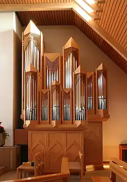 Die mechanische Orgel stammt aus dem Jahr 1984 und besitzt 18 Register auf zwei Manualen samt Pedal. Gebaut wurde sie von der Firma Mathis.