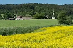 Urkundlich wurde im Jahr 1616 eine Kirche genannt. Die Kirche wurde 1756 nach einem Brand wieder aufgebaut. 1999 erfolgte eine Außenrestaurierung.