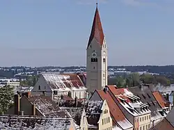 Von 1438 bis 1443 entstand ein Neubau der Stadtpfarrkirche. Die Weihe erfolgte durch den Augsburger Bischof Peter Kardinal von Schaumberg persönlich.[11] Später wurde die Kirche mit einem Schnitzaltar des Ulmer Meisters Michael Erhart ausgestattet.