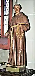 | 19 | Antonius von Padua | Holz | 140 cm | Seitenschiff: Die Statue des Antonius von Padua im Habit eines Franziskaners, auf dem Arm das Jesuskind. | um 1850 | |