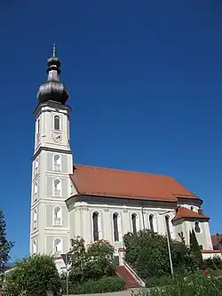 Vor der jetzigen Kirche, errichtet vom Erdinger Stadtmaurermeister Johann Baptist Lethner im Jahre 1758, stand ein mittelalterlicher Vorgängerbau, der 1690 durch den Erdinger Stadtmaurermeister Hans Kogler erweitert und eingewölbt wurde.