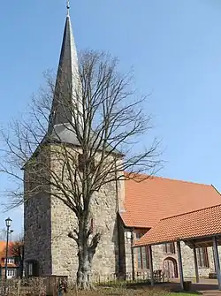 Die romanische Feldsteinkirche wurde um 1200 erbaut. Sie besteht aus dem Kirchturm im Westen, dem Langhaus und dem eingezogenen, dreiseitig abgeschlossenen Chor. Sämtliche Fenster wurden 1901 mit korbbogig profilierten Gewänden aus Backsteinen erneuert, Spuren der romanischen Bogenfenster mit Laibungen aus behauenen Feldsteinen sind noch sichtbar. Im Kirchturm hängen drei Glocken.[1]
