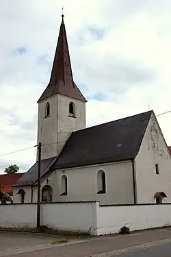 Die Ursprünge der romanischen Saalkirche gehen vermutlich in die Karolingerzeit zurück. Sie besteht aus einem Langhaus, das Ende des 19. Jahrhunderts nach Westen verlängert wurde, und einem Chorturm im Osten, der nach seiner Aufstockung mit einem Geschoss, das den Glockenstuhl beherbergt, mit einem spitzen Helm bedeckt wurde. An der Nordwand des Chorturms wurde die Sakristei angebaut.