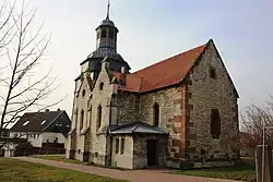 Am 4. Juli 1145 weihte der Erzbischof von Mainz einen Vorgängerbau der heutigen Kirche dem Heiligen Martin. Aus dem 14. Jahrhundert sind nur wenige Bauteile im Chor vorhanden, wie das Kreuzgewölbe, ein spitzbogiges Fenster und eine Piscina. Der Kirchturm wurde um 1500 errichtet. Die barocke Haube mit der achteckigen Laterne erhielt er um 1700.