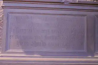 Inschrift auf der rechten Seite des Sockels: „Und Anno 1[599] den [20. Mai] starb Sinngemäße Bedeutung der Inschrift: Und im Jahre 1599 den 20. Mai starb |