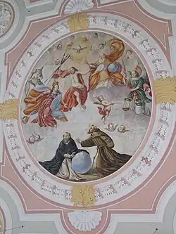 Der Stuck im Langhaus wurde 1701 von Michael Stiller nach Entwürfen Johann Mercks geschaffen. Der Stuck an den Brüstungen der Empore von 1771 stammt von Pontian Hoiß.