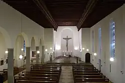 Am 14. Oktober 1934 fand die Grundsteinlegung der neuen Kirche statt. Männer des Orts leisteten kostenlos Handdienste beim Bau, um Kosten zu sparen. Die Architektur von Hans Peter Fischer (Köln) erinnert an das Neue Bauen der 1920er-Jahre, das Innere ist einer romanischen Hallenbasilika nachempfunden. Die Kirche ist ungefähr nach Osten ausgerichtet und besitzt ein nördliches Seitenschiff. Die beiden Glocken aus der Ipplendorfer Kirche wurden in die neue Kirche gebracht, die Martinsglocke von 1514 und die Marienglocke von 1858. Letztere hängt heute wieder in der Ipplendorfer Kirche. 1963 wurde das Geläut um drei neue Glocken erweitert.