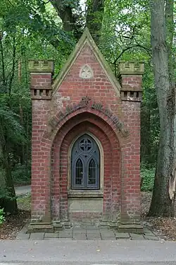 Das in neugotischen Formen aufgeführte Heiligenhäuschen stammt aus dem Jahre 1881. Es ist ganz aus Backstein errichtet. Die Fassade besteht aus einem gestuften Spitzbogenportal.