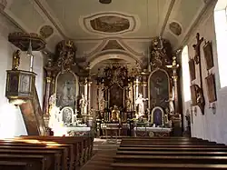 Der Kreuzweg, 14 Ölgemälde auf Leinwand, ist eine Arbeit aus dem Ende des 18. Jahrhunderts. Weitere Ölgemälde stellen die 12 Apostel dar; sie sind an der Emporenbrüstung angebracht und stammen aus der 1. Hälfte des 18. Jahrhunderts.