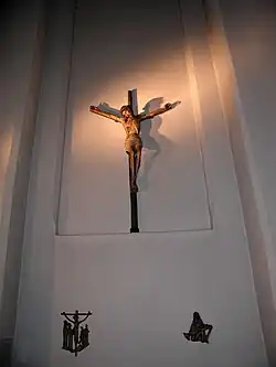 Das moderne, den ehemaligen Haupteingang ersetzende Fenster zeigt einen von Ludwig Gies entworfenen steinernen siebenarmigen Leuchter.